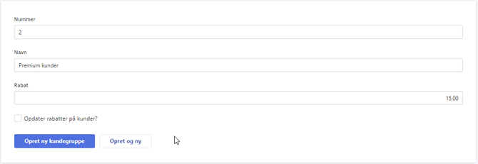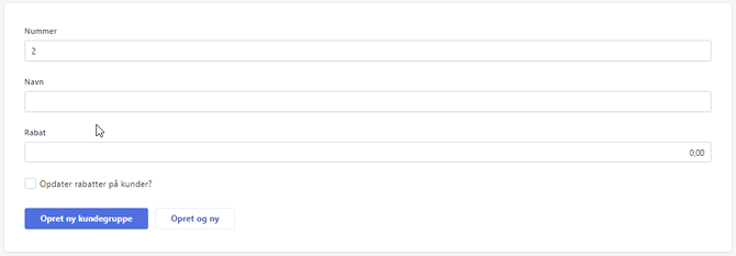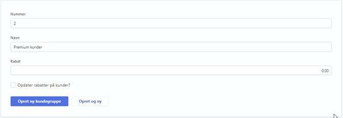 Afslut Oprettelsen: Når du har indtastet alle oplysninger, klik på “Opret ny kundegruppe” for at færdiggøre, eller “Opret og ny” for at forberede oprettelsen af endnu en gruppe.