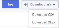 Vælg om rapporten skal downloades som Excel-fil eller CSV.
