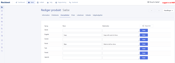 I Rackbeat kan du oprette de sprog, som er relevante for din forretning. På den måde vil du kunne oversætte dine produktnavne til det sprog, dine kunder foretrækker. Nedenfor guider vi dig igennem, hvordan du opretter sprog, og tilføjer dem på produkter og PDF'er.
