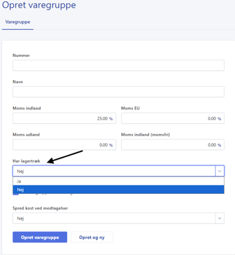 Opret varegruppe:- Gå til Varer - Varegrupper