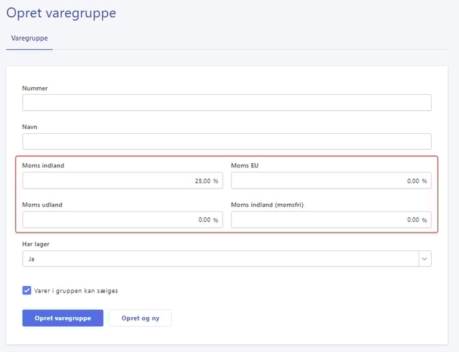 Ved at oprette varegrupper får du styr på dine lagerbevægelser og moms, samt om varerne skal kunne sælges eller ej.
