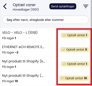 Du kan bekræfte, at alle produkter er optalt på lokationen.