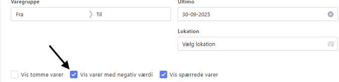 - Tag stilling til om varer med negativ værdi skal inkluderes: