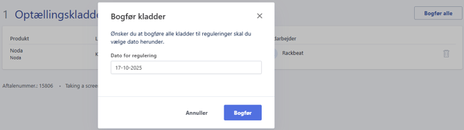 Oprettes optællingen som kladde, kan du angive dato før bogføring: