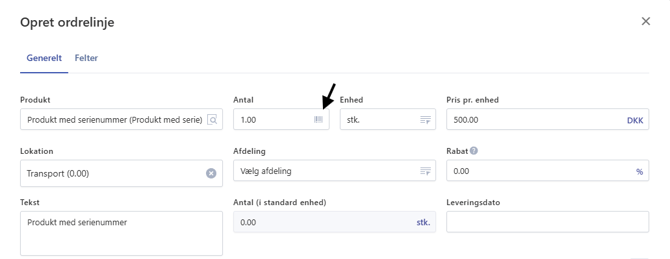 *Serienummer kan ikke aktiveres på varer uden lagertræk.