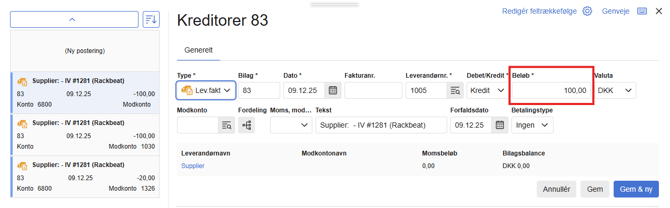 - Fjern fragtbeløbet fra posteringen, for at udligne bilagsdifferencen: