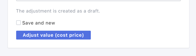 Create an adjustment: Go to "Adjustments", click "Create new adjustment", and choose "Adjust cost price".