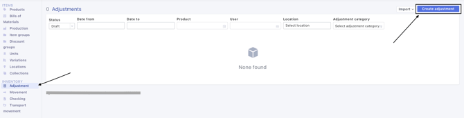Create an adjustment: Select "Adjustments" from the menu and click "Create new adjustment" in the upper-right corner.