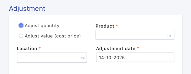 Below, we’ll guide you through how to create a manual quantity or cost price adjustment.