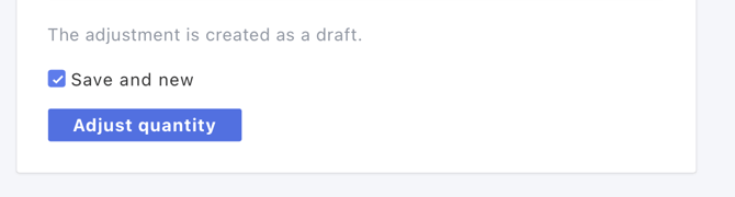 The adjustment is saved as a draft and must be booked. The button "Save & New" allows you to create another adjustment if needed.