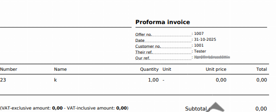 The offer now reads 'Proforma Invoice,' and this way, you can use the offer function in Rackbeat with a layout to send a 'proforma invoice.'