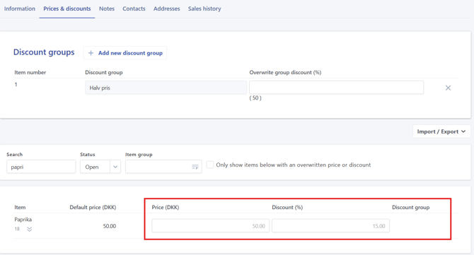 On customers, it is possible to work with a general discount as well as product-level discounts.