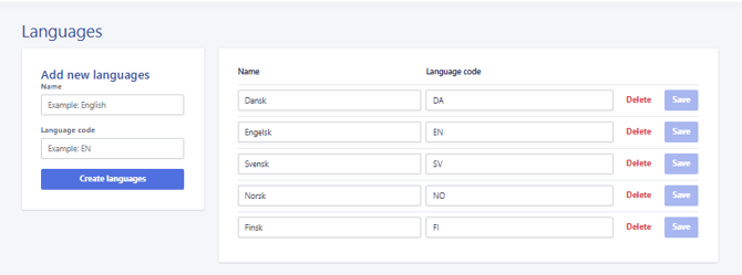 - Enter the language and language code of your choice, then press 'Create New Language'