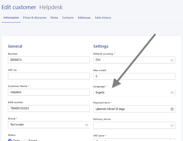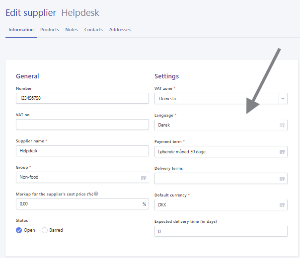 The selected language of your customers and suppliers determines which translation is used on line items in quotes, orders, supplier confirmations, and invoices.