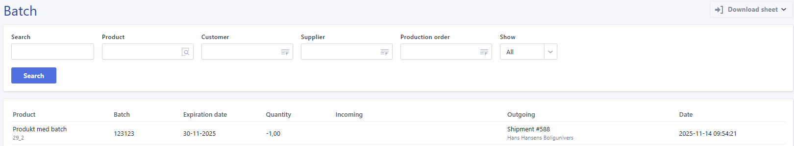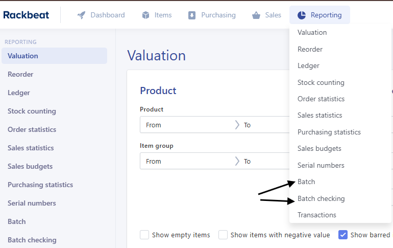 Rackbeat’s batch reports provide a detailed overview of batch movements and current stock levels.