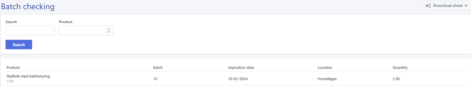 The Batch count report provides an overview of which batches are currently in stock, including location and expiration date.
