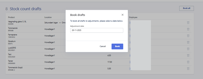 When the inventory count is completed, the new inventory value must also appear in your ERP system – and it should happen on the same date as the count in Rackbeat.