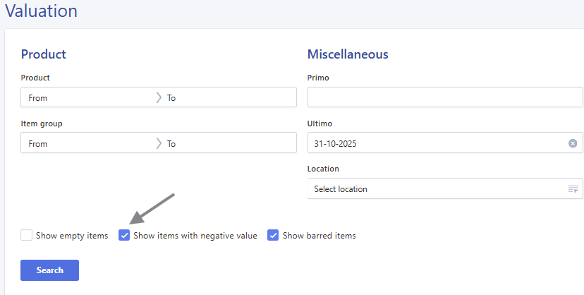 To expand the overview to include products without stock at the location, press the filter in the upper-right corner: