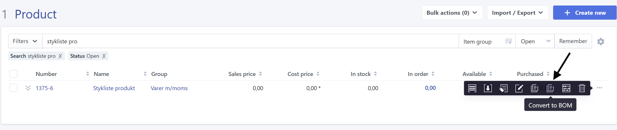 Hover over the three dots on the right-hand side and select Convert to BOM.