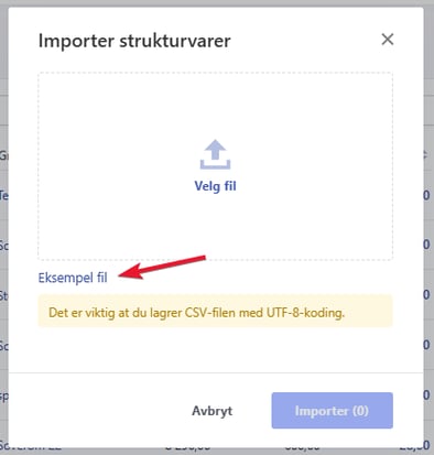OBS! Varegruppene må være opprettet før du kan importere strukturvarene. Se denne guiden for hvordan du oppretter varegrupper.