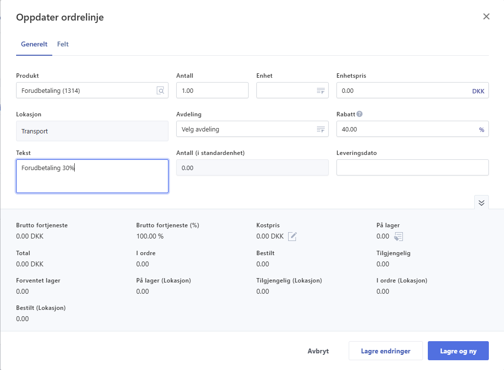 - Navnet kan alltid redigeres på ordren, avhengig av hvilken forskuddsbetaling det gjelder.