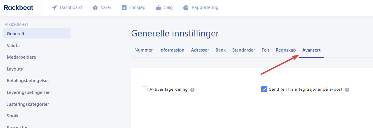 - Gå til fanen 'Avansert' under de generelle innstillingene: