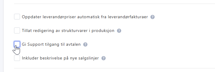 - På denne siden finner du boksen 'Gi Support tilgang til din avtale'. Huk av i denne boksen for å gi Rackbeat Support tilgang.