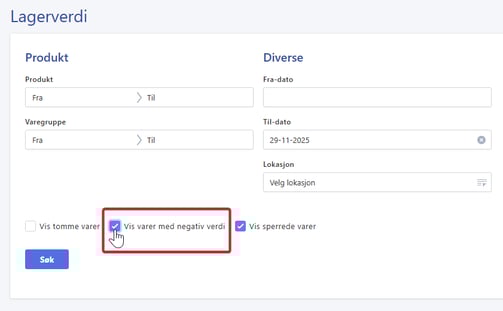 - Ta stilling til om varer med negativ verdi skal inkluderes: