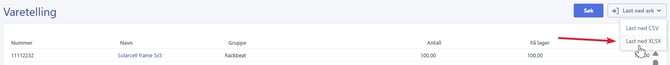 Hvis du trenger å nullstille lageret før varetellingen importeres, kan du bruke den samme filen, men sette antallet til 0.