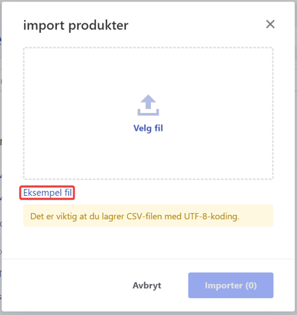 Vi anbefaler at du alltid bruker eksempelfilen for å sikre en best mulig import.