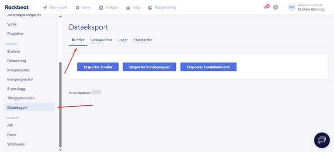 Dataeksport i Rackbeat gir deg mulighet til å eksportere Kunder, Kundegrupper og Kundekontakter med tilhørende ID-er.