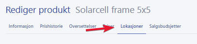 Når du har funnet produktet, klikker du på ‘Lokasjoner’ for å komme til siden der du kan gjøre oppdateringer eller gjennomføre en import.
