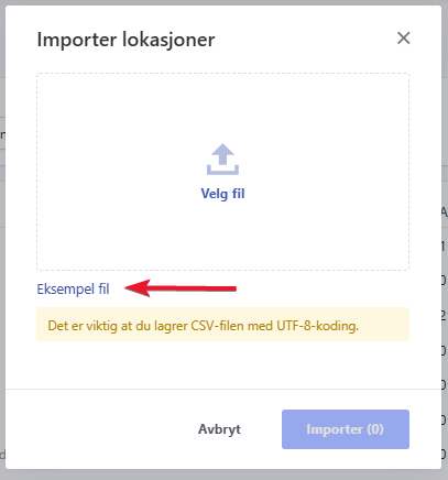 - Avslutt med å klikke på ‘Importer’, så vil lokasjonene dine bli lest inn i systemet.